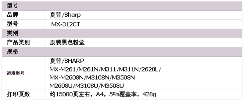 夏普原装 MX-312CT 粉盒 M261 M311 2608 3108 3508 N U 碳粉 墨粉(428g)