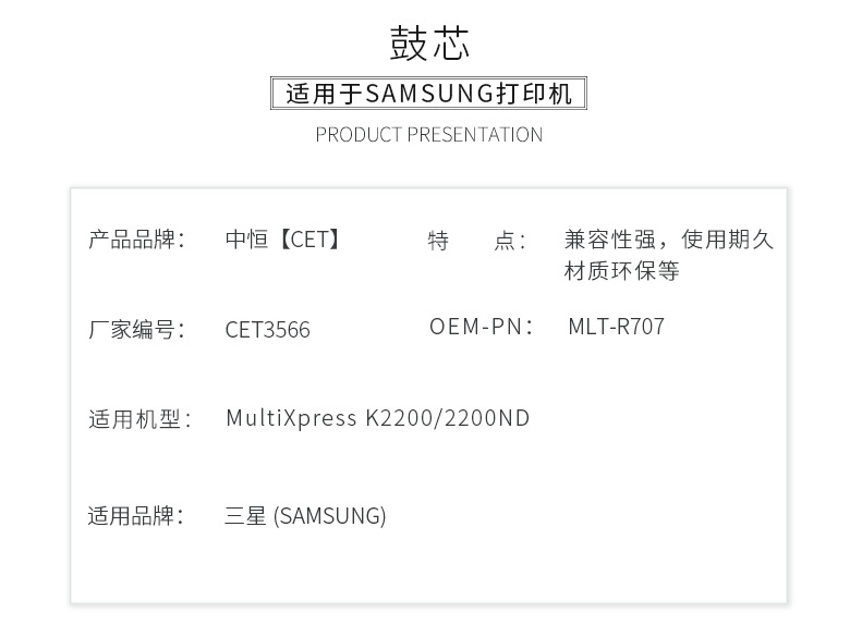 中恒(CET)2200/ML707 硒鼓芯单鼓感光鼓适用于三星打印机 单鼓(日本鼓)