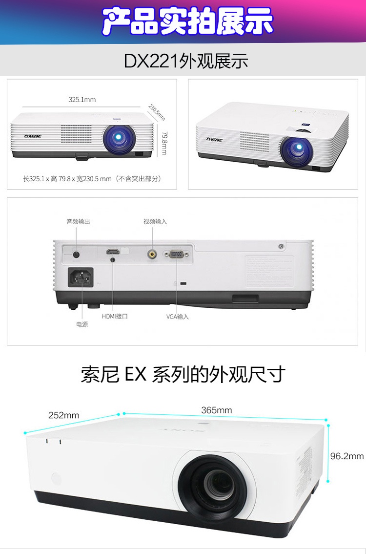 索尼 VPL-DX221 (1024*768dpi /2800流明) 商用教育投影机