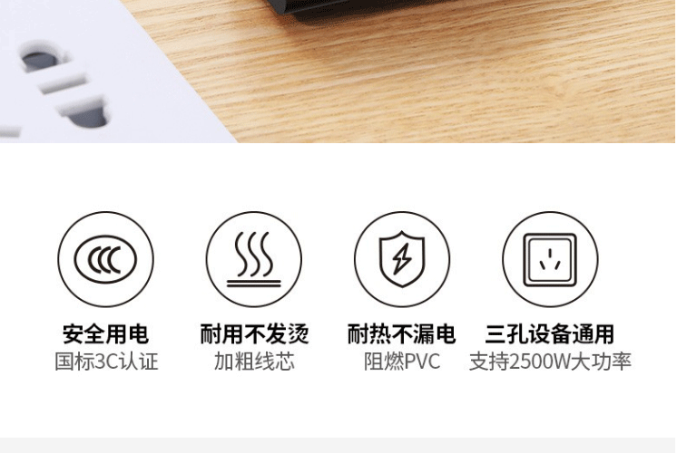 3C强电安全认证,电饭煲台式机箱显示器屏电热水壶插头1.5米 黑