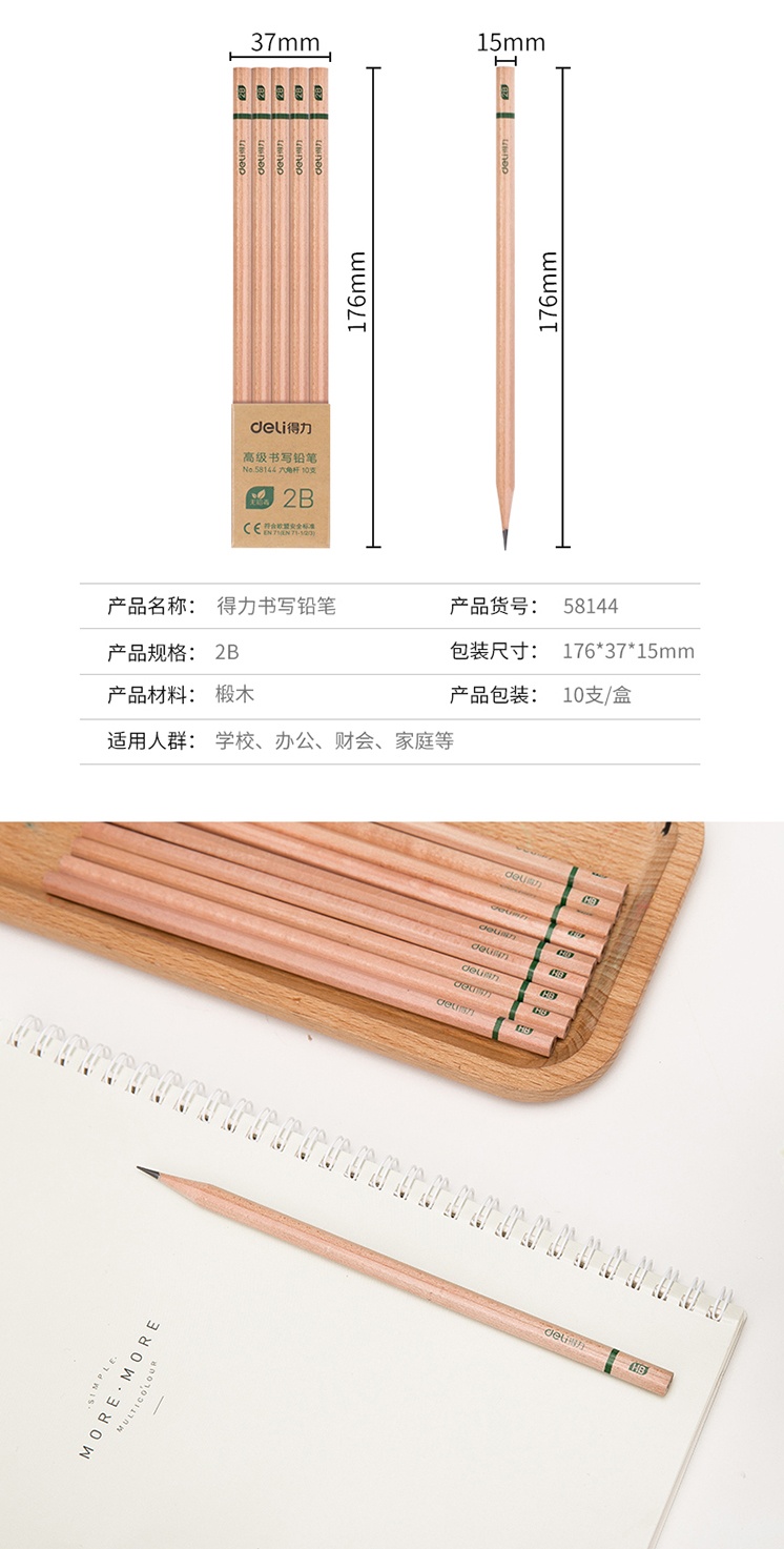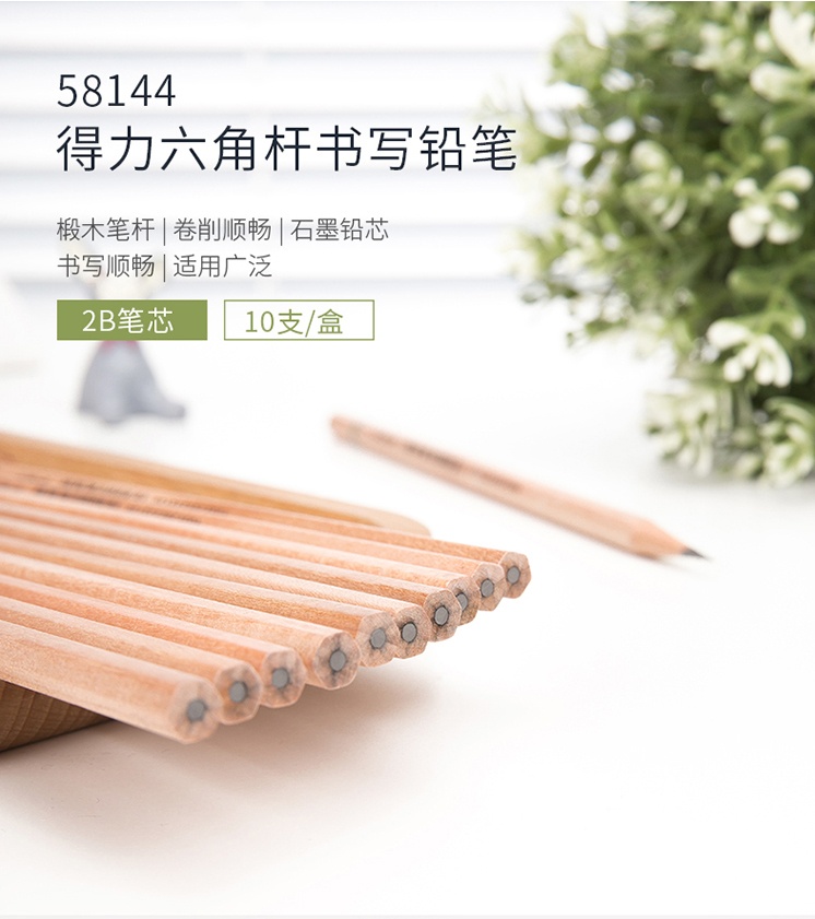 得力58144_六角杆2B书写铅笔10支切光(混)
