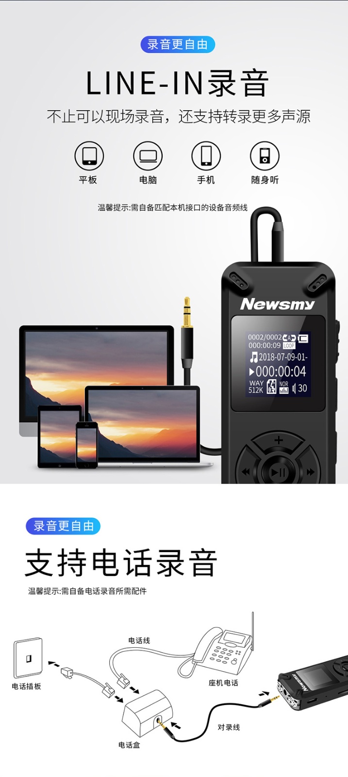 | 功能 | 录音,远程录音,快充 |