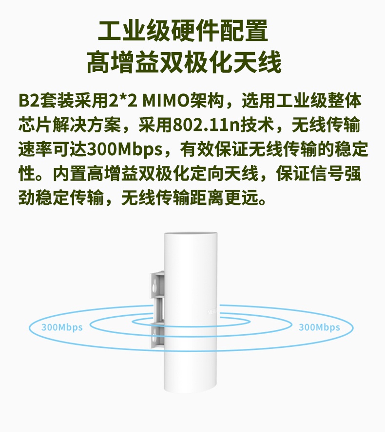 2.4GHz无线高速300M双百兆端口内置高增益天线工业级芯片统一管理软件功率可调供电灵活