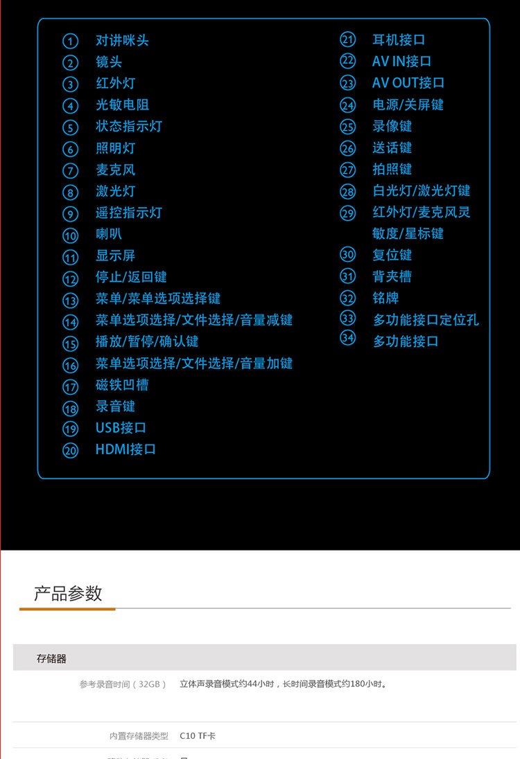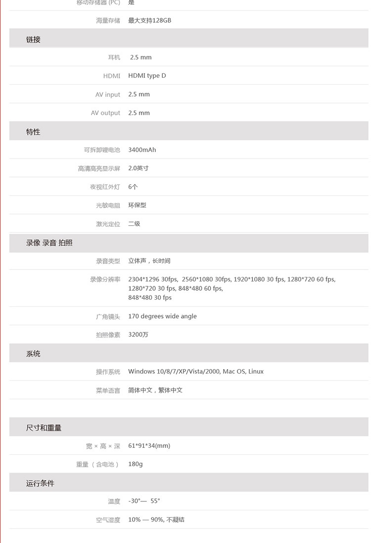 1296P高清摄像,红外夜视,170度广角,128G扩展
