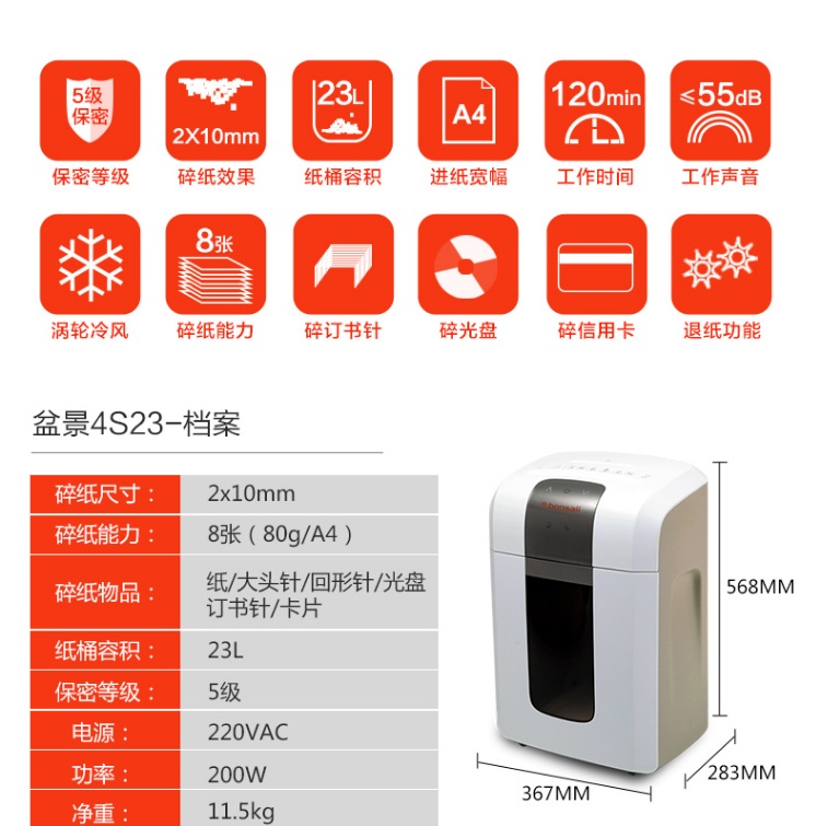 高保密静音连续2小时碎纸机(碎卡/光盘/订书针)