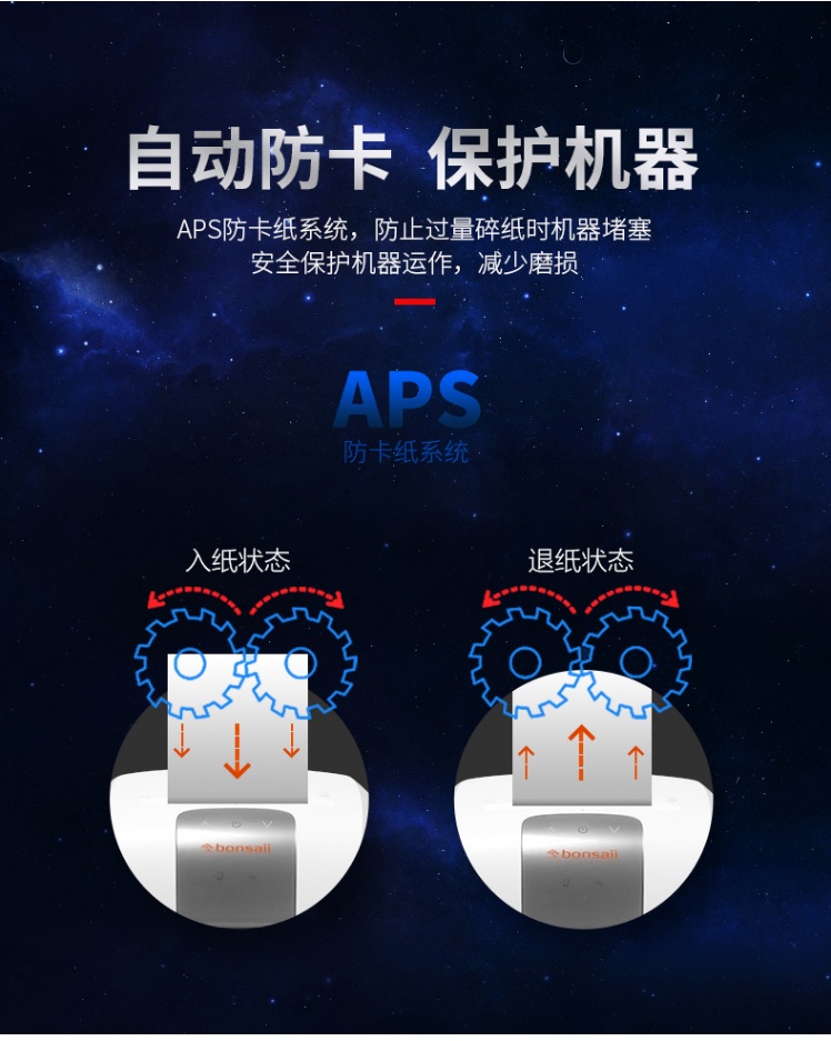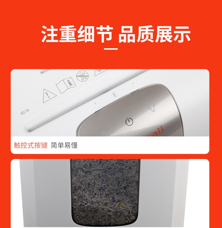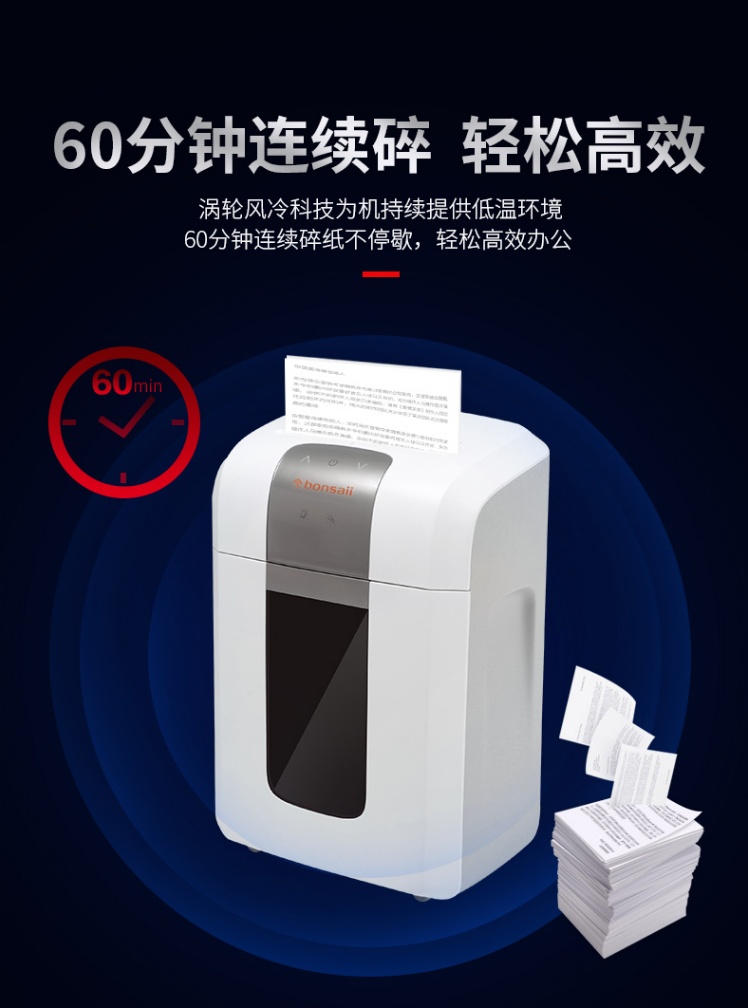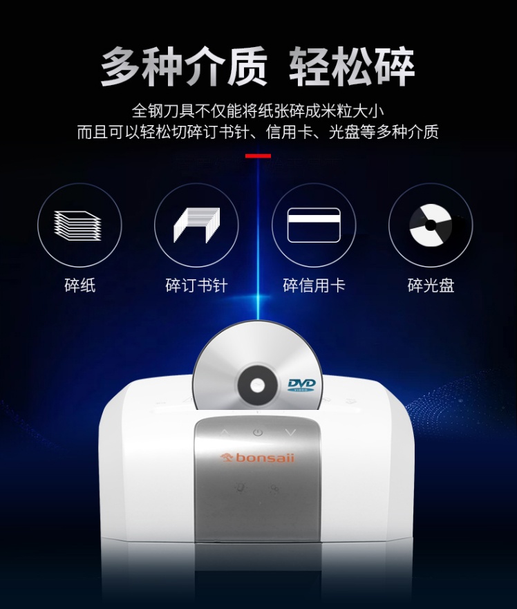 特性 可碎纸、光盘、信用卡、订书针、回形针(连续工作1小时)