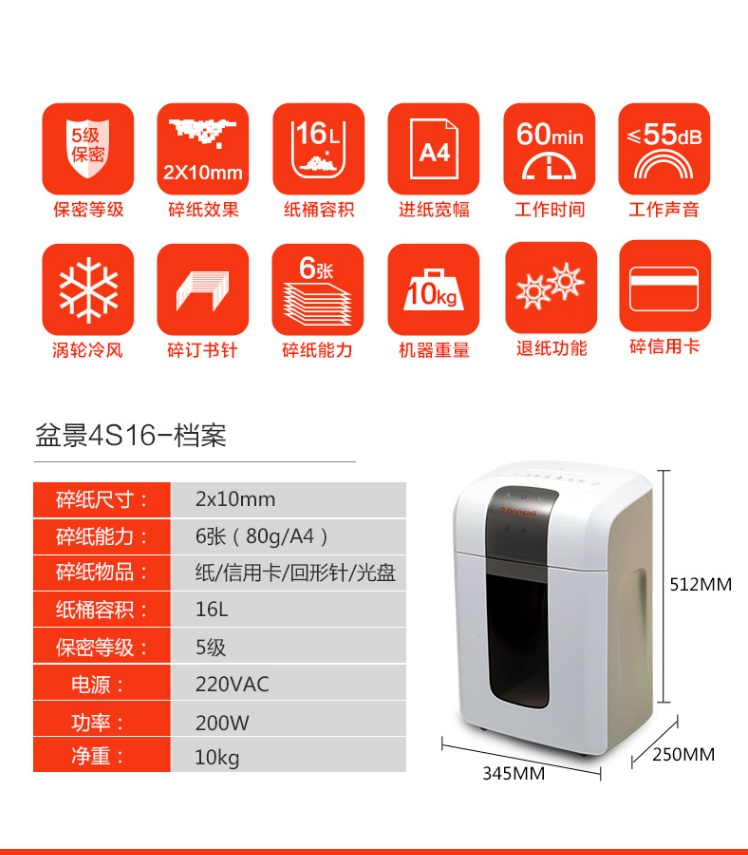 5级保密,可碎三钉一卡,单词碎纸能力10张,连续工作时间1小时