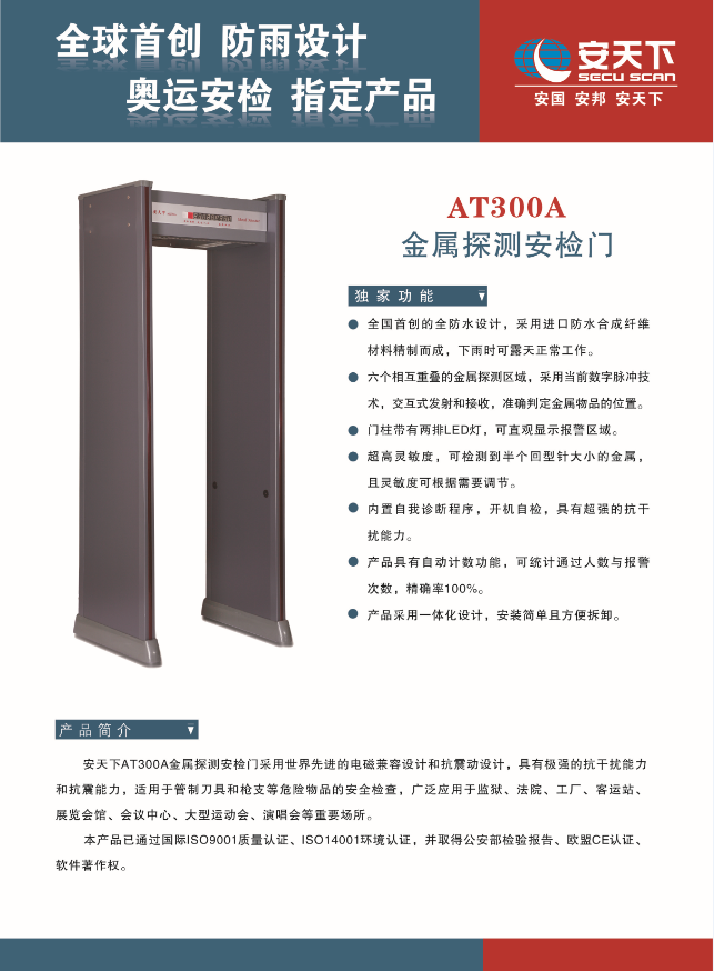安天下 AT300A 通过式金属探测安检门