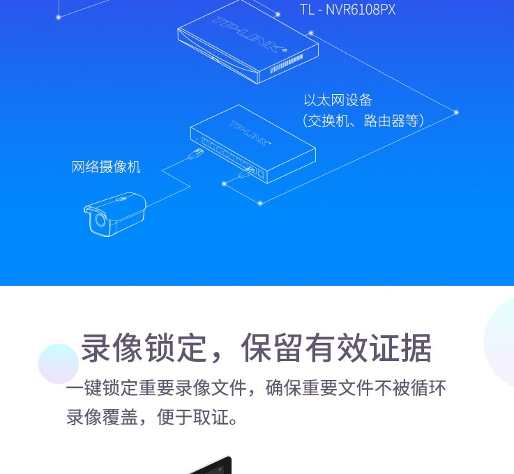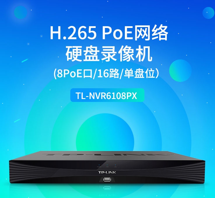 TP-LINK TL-NVR6108PX H.265 PoE网络硬盘录像机(8PoE口/16路/单盘位)