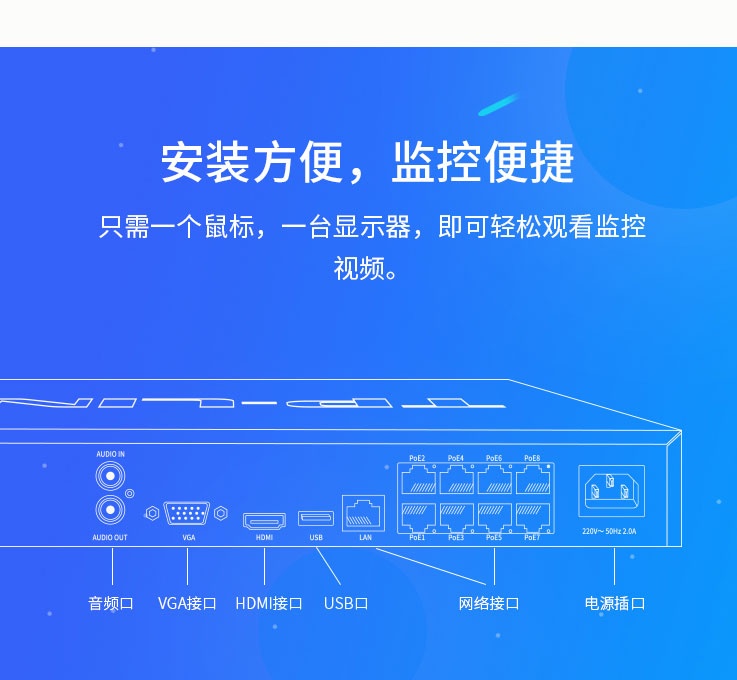 可接入16路监控,单盘位,8个PoE供电端口,最大支持800万像素摄像机,不含硬盘