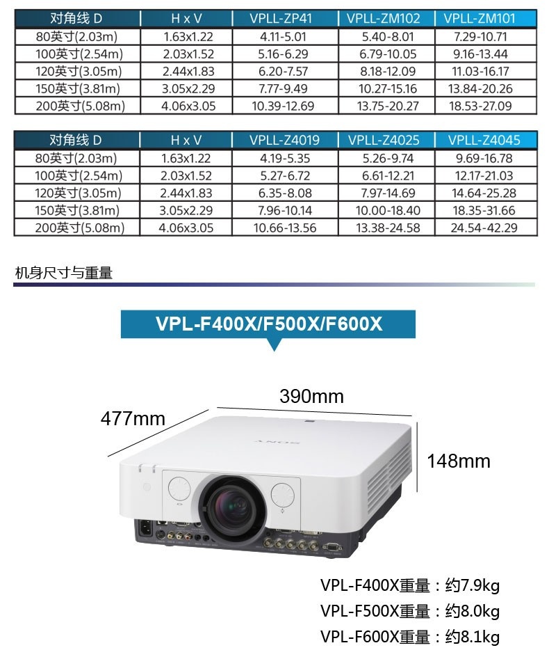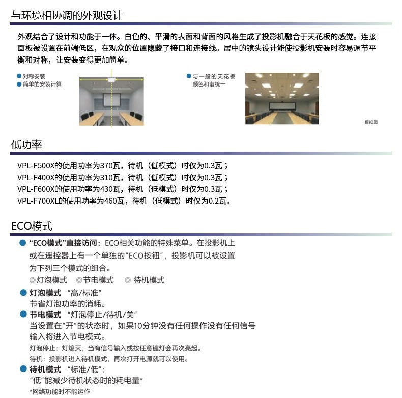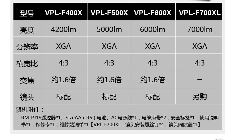 索尼 VPL-F600X (1024*768dpi /6000流明) 教育会议投影机