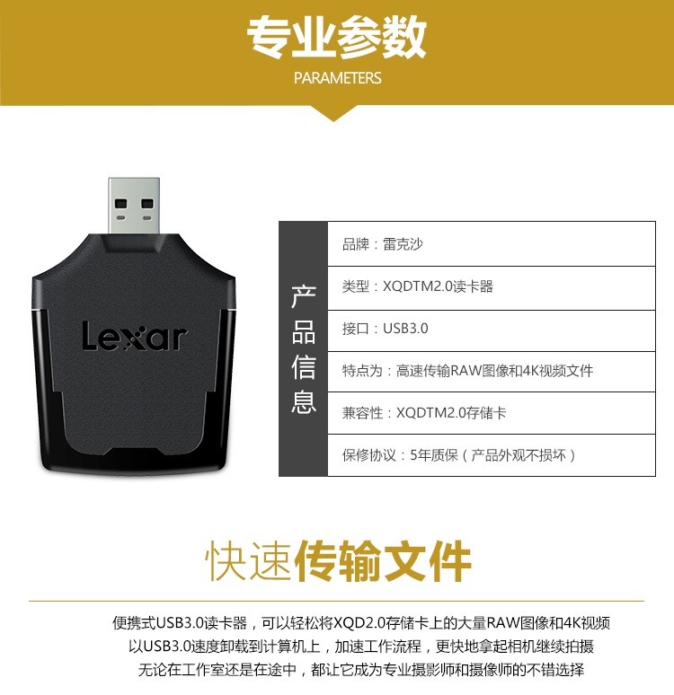 雷克沙(Lexar)专业版 XQD 2.0 USB 3.0 读卡器