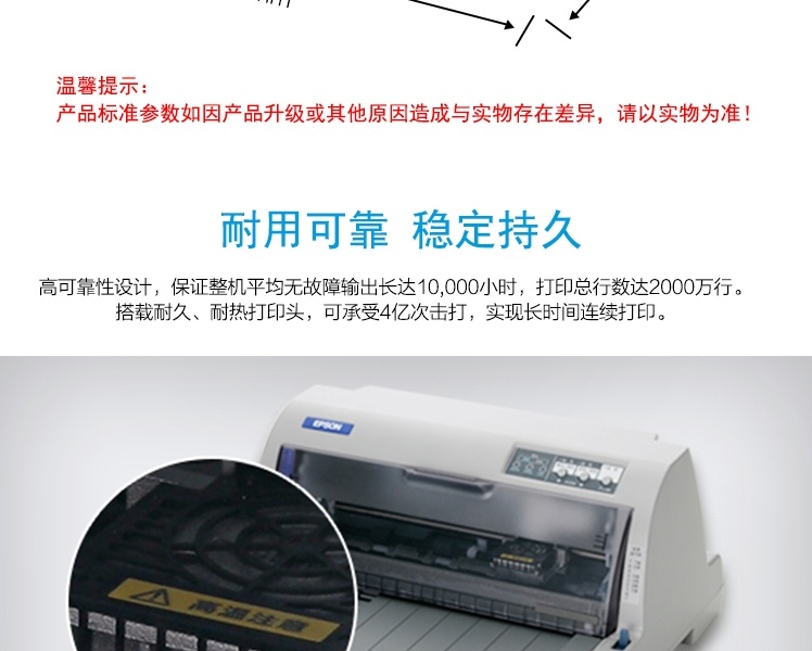 | 包装清单 | 打印机× 1,色带架 × 1,出纸器 × 1,随机光盘 × 1,使用阅读手册 × 1,保修卡 × 1 |