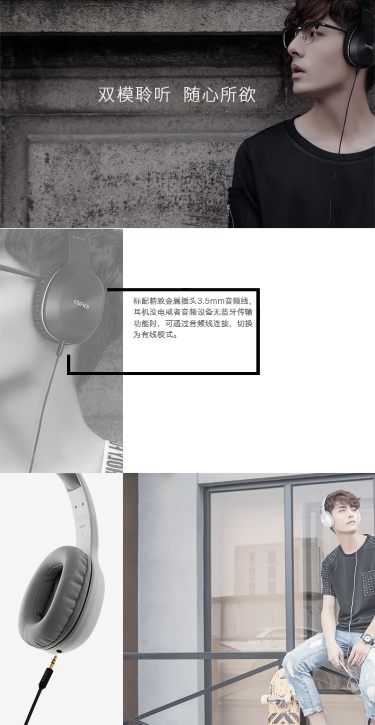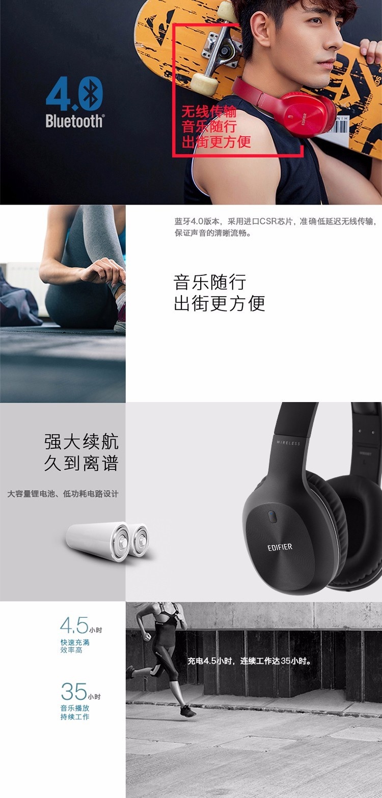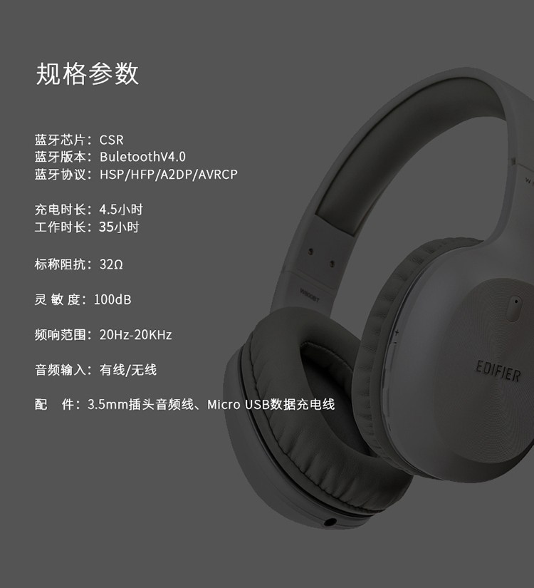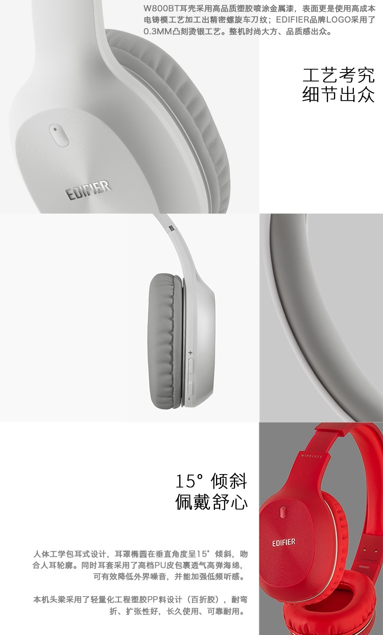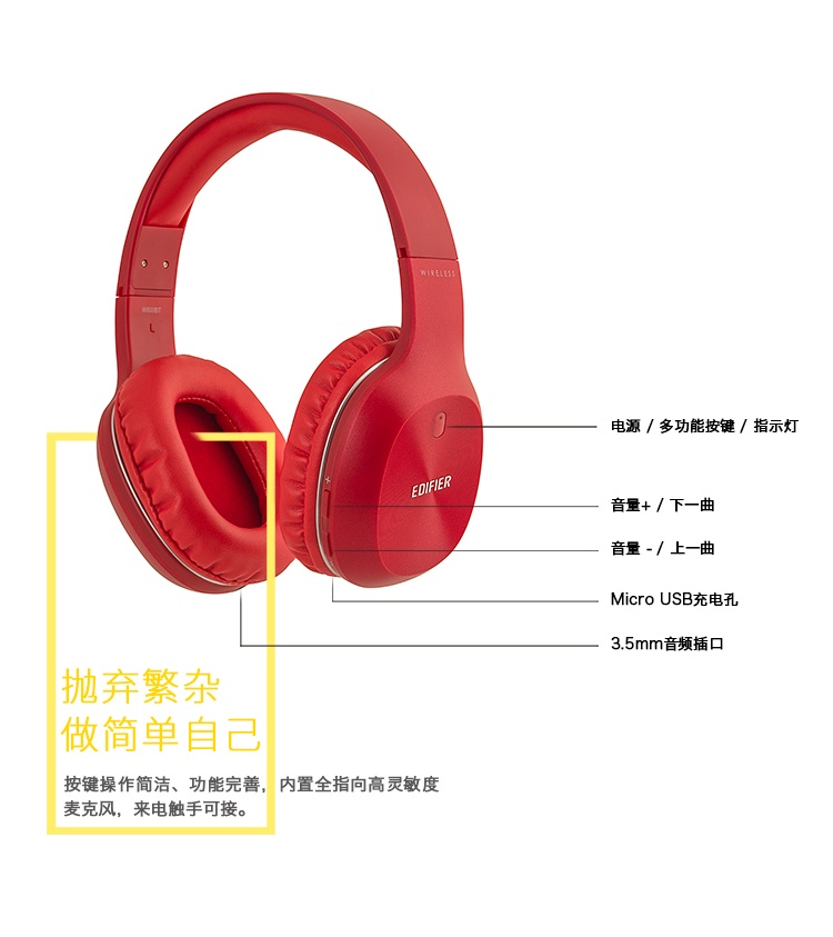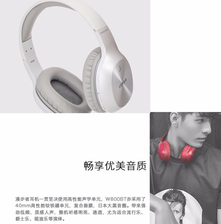 漫步者 W800BT 头戴式蓝牙耳机 黑色