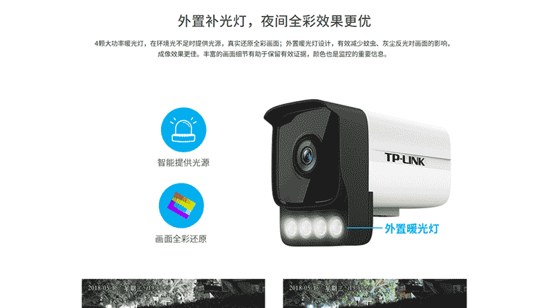 TP-LINK TL-IPC534HP-W4 300万 智能全彩 监控摄像机