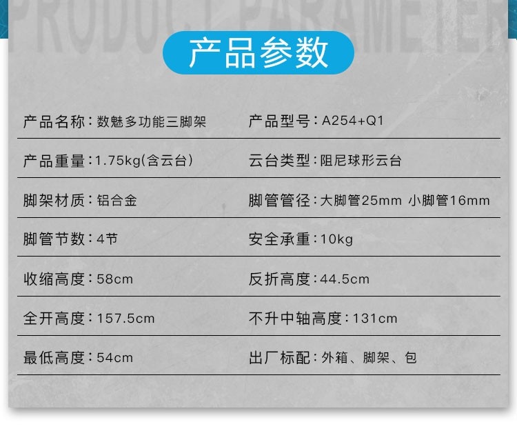 | 特点 | 便携反折、可拆独脚、中轴倒置 |