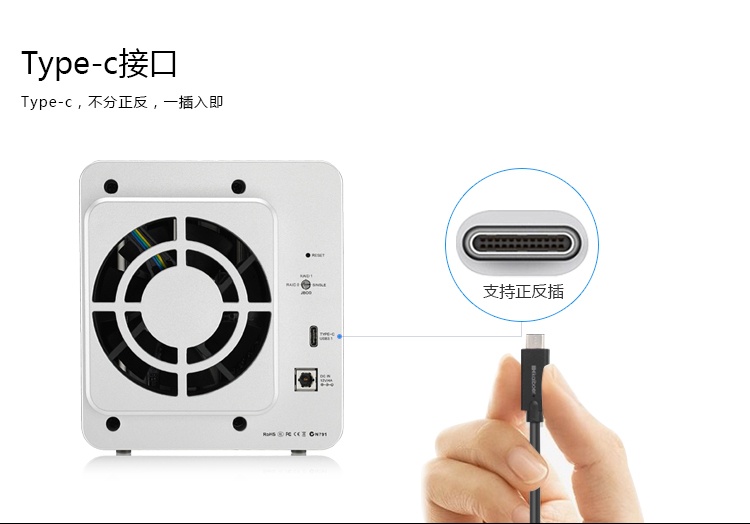 特性 | type-C 接口,支持RAID0/1 |