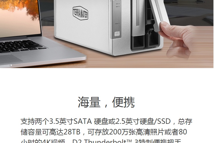 铁威马(TERRA MASTER)D2-330 2盘位 雷电3 磁盘企业阵列盒存储柜桌面存储