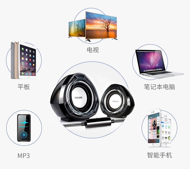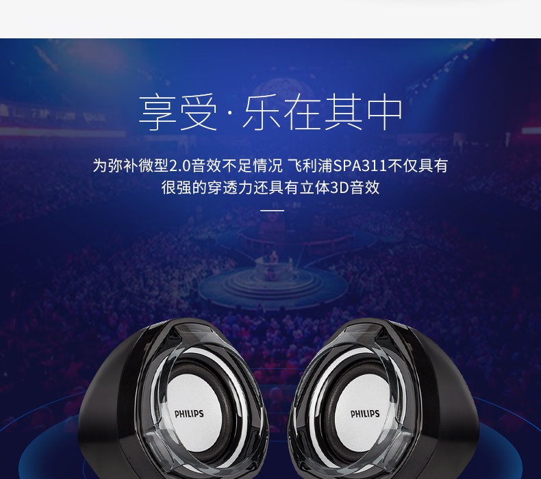 飞利浦 SPA311 2.0USB台式电脑音箱 白色