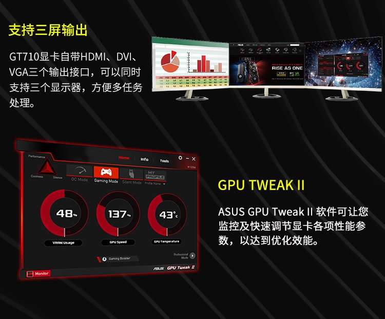 入门GT710显卡,家用办公之选。2G大显存,可做投影、多屏输出使用