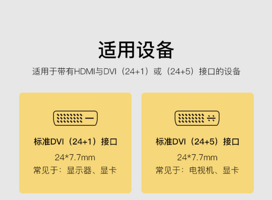 | 接口类型 | HDMI A 公 /DVI 24+1 公 |
