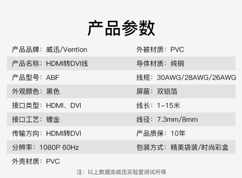 | 名称 | HDMI 转 DVI 线 (互转) |