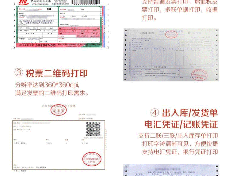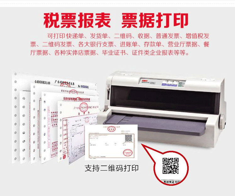 | 其它特性 | 适用领域:快递、物流、医疗、电信、交通、邮政、保险、教育、社保、中小企业等,满足各种税票及票据打印需求; |