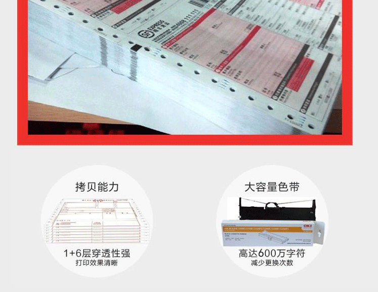 | 色带性能 | 色带型号:色带架:42992706,色带芯:42992806 色带寿命:600万字符 |
