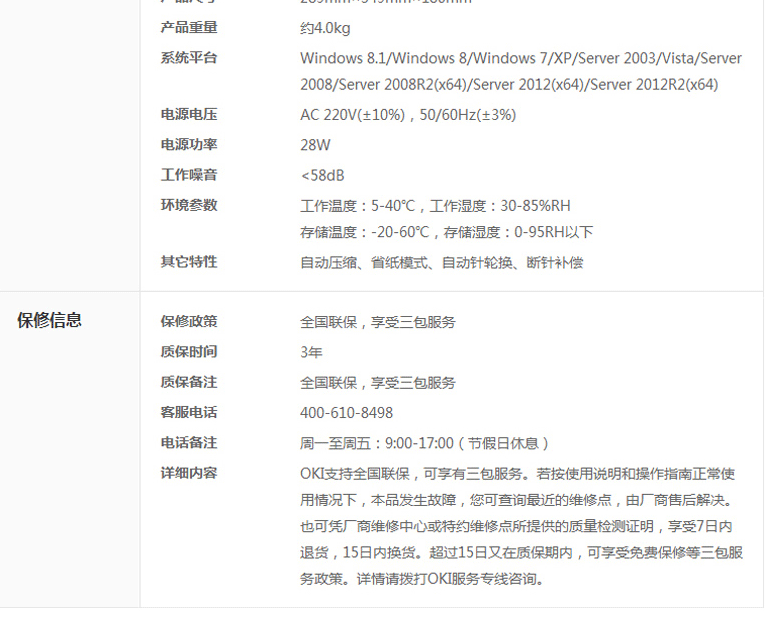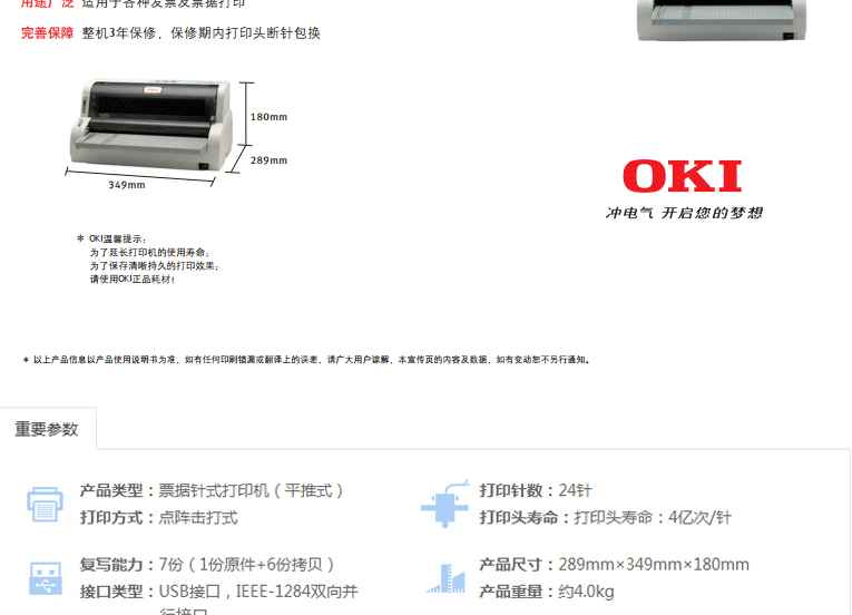 | 可靠性 | 打印头寿命:4亿次/针 |