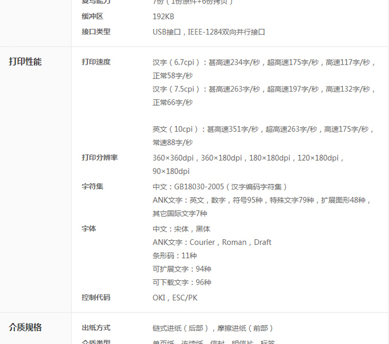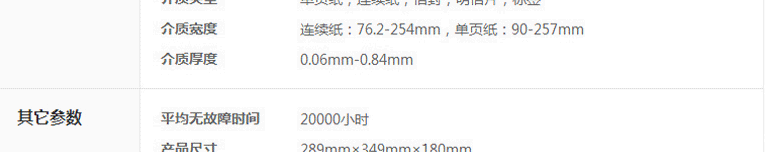 | 介质宽度 | 连续纸:76.2-254mm,单页纸:90-257mm |