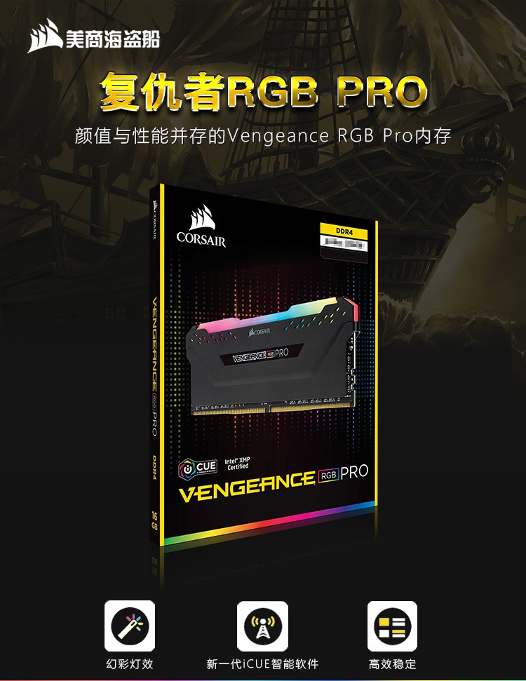 海盗船 复仇者RGB PRO 8G DDR4 3600 灯条 台式机内存