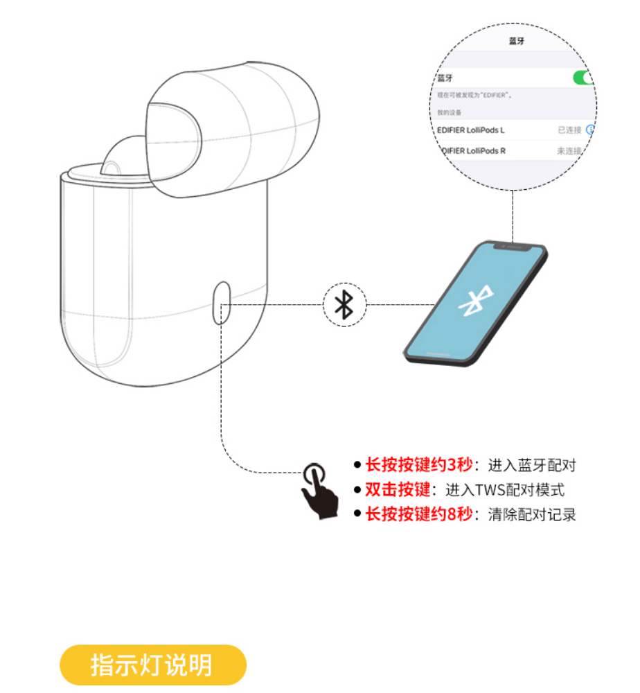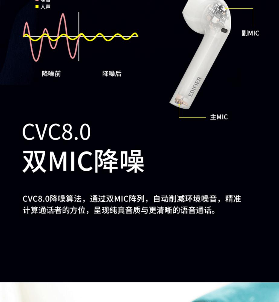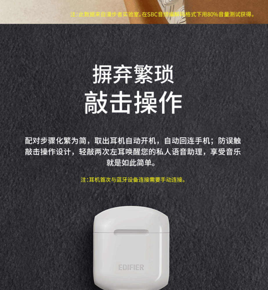 | 包装清单 | 耳机× 2、充电盒× 1、USB充电线× 1、耳机说明书&保修卡× 1 |