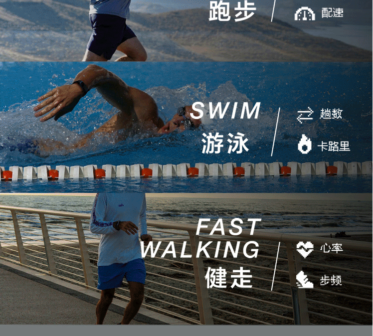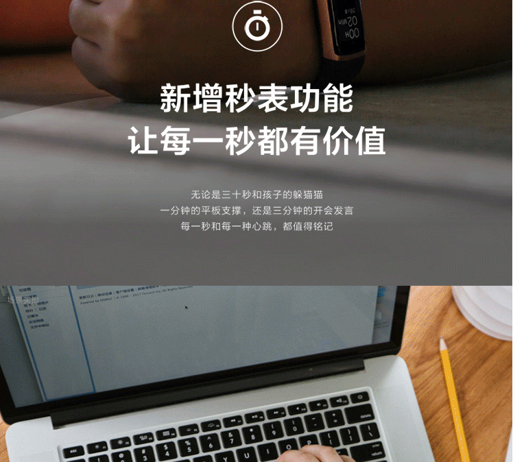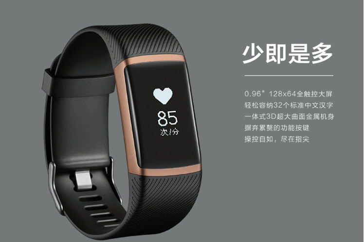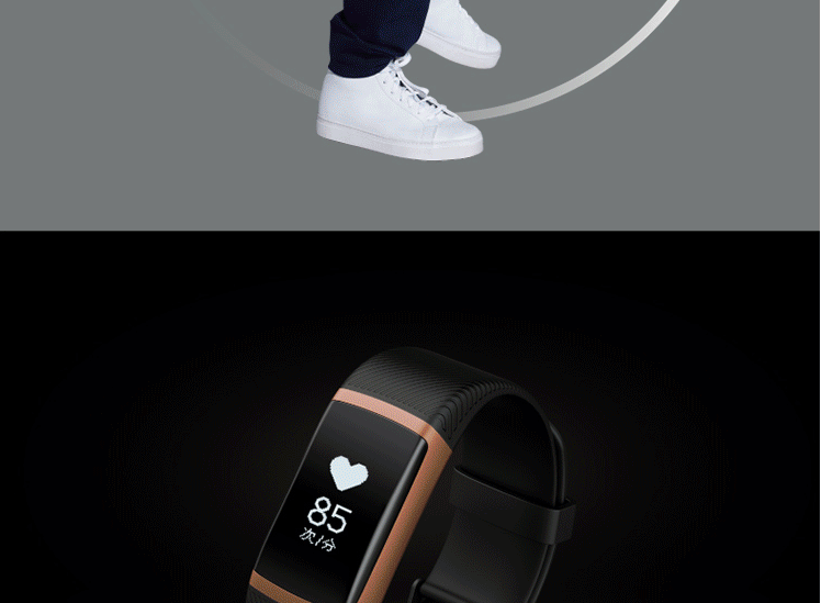 24小时心率监测,自动感应进入跑步模式,好友PK,拒接来电,睡眠检测,防水续航棒