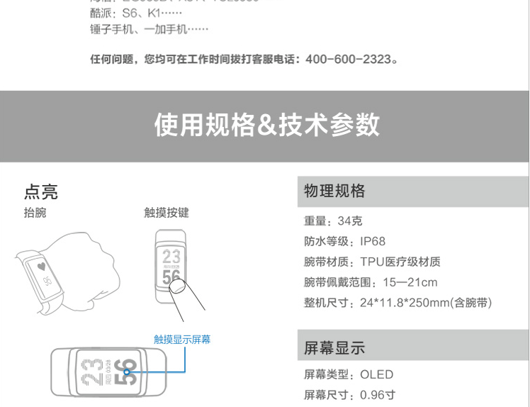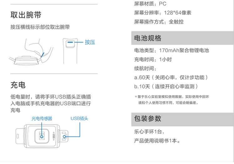 包装清单 乐心智能手环ziva plus×1、产品说明书×1
