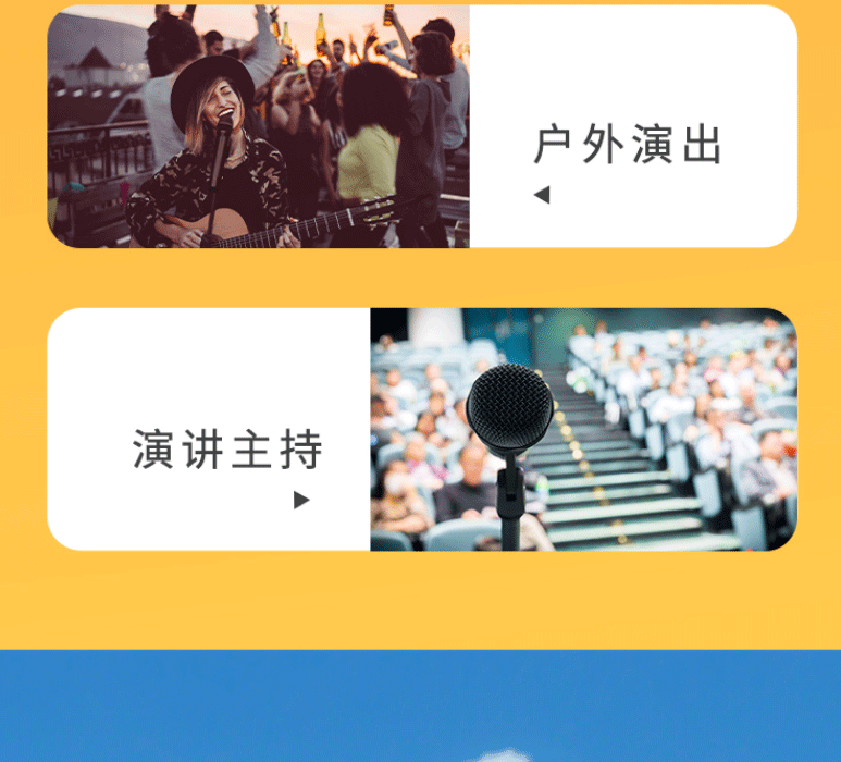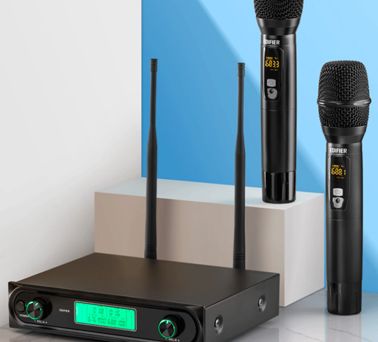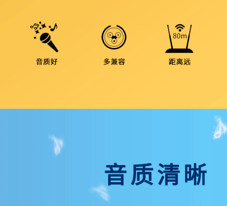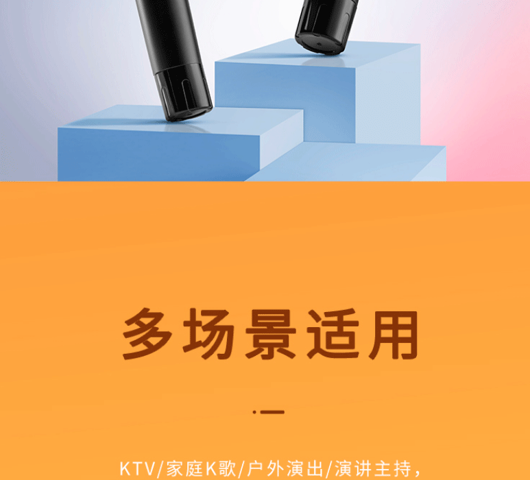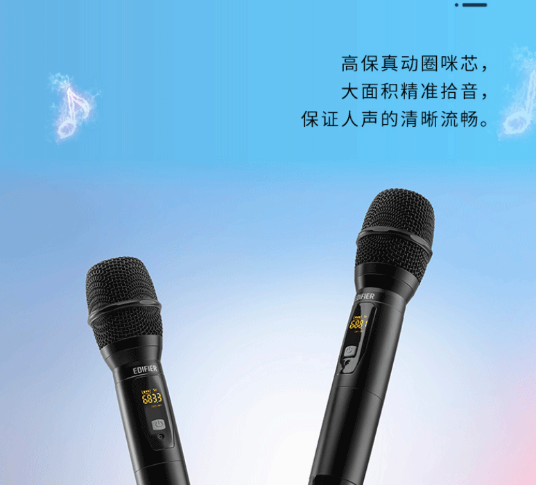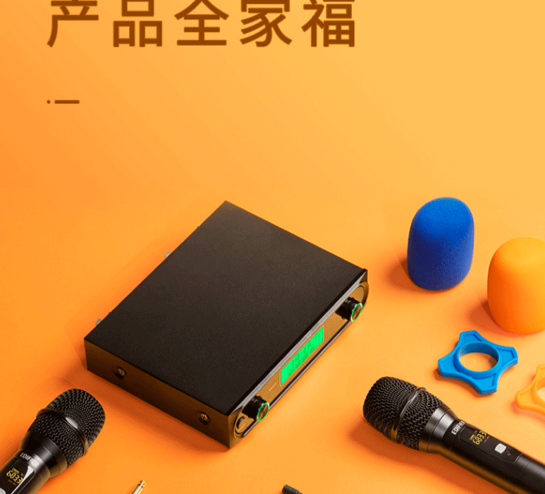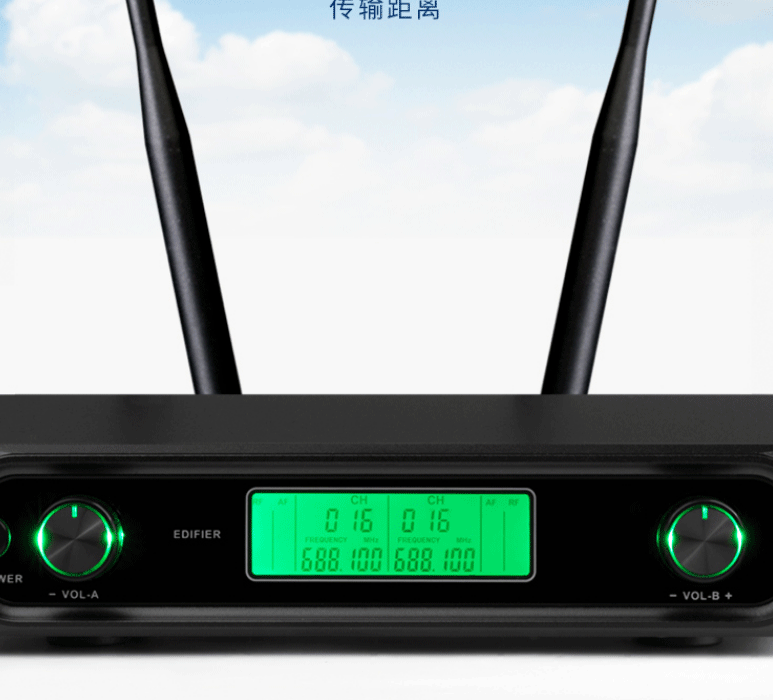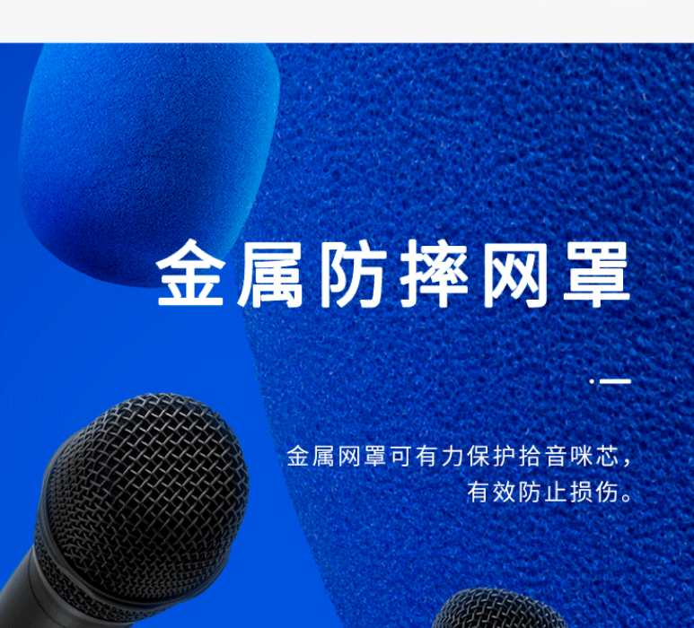 UHF频段信号传输,加强双天线接收,抗干扰能力强,传输距离可达50-80米 麦克风和接收主机均采用全金属材质,暗夜黑色喷漆,磨砂质地,触感细腻。 麦克风开机15秒后自动进入省电模式,显示屏上只显示电池电量,用户可一键唤醒,也可通过接收主机查看当前工作状态。 A/B两个麦克风各有50组频点,自由调频,允许多台同款麦克风一起使用。 手持麦克风和接收机都配备高清显示屏,实时显示当前工作状态 只要带MIC输入以及卡侬接口的设备,都可连接使用。即插即用,自动配对,无需繁琐调试。 金属网罩可有力保护拾音