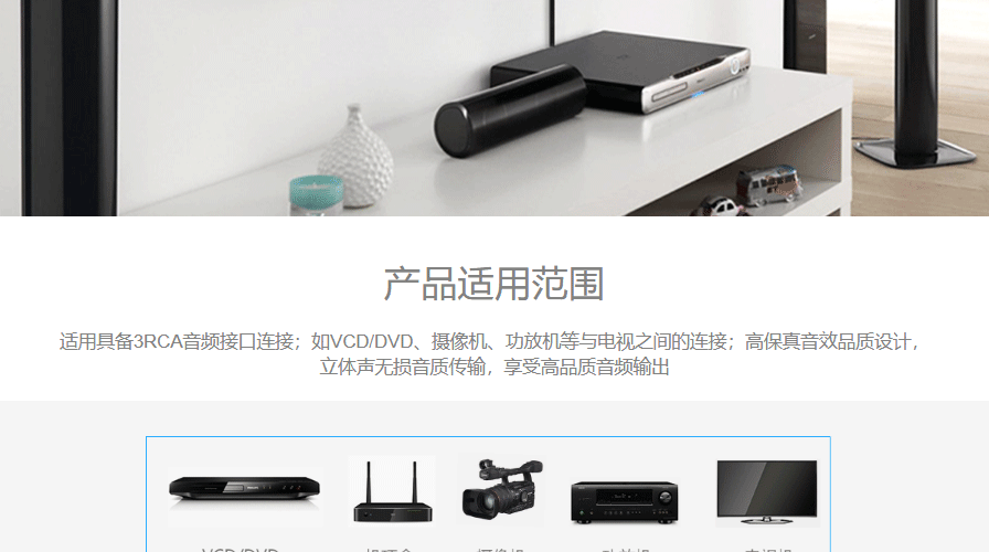 | 适用设备 | 适用于VCD/DVD、摄像机、功放机、电视机等 |