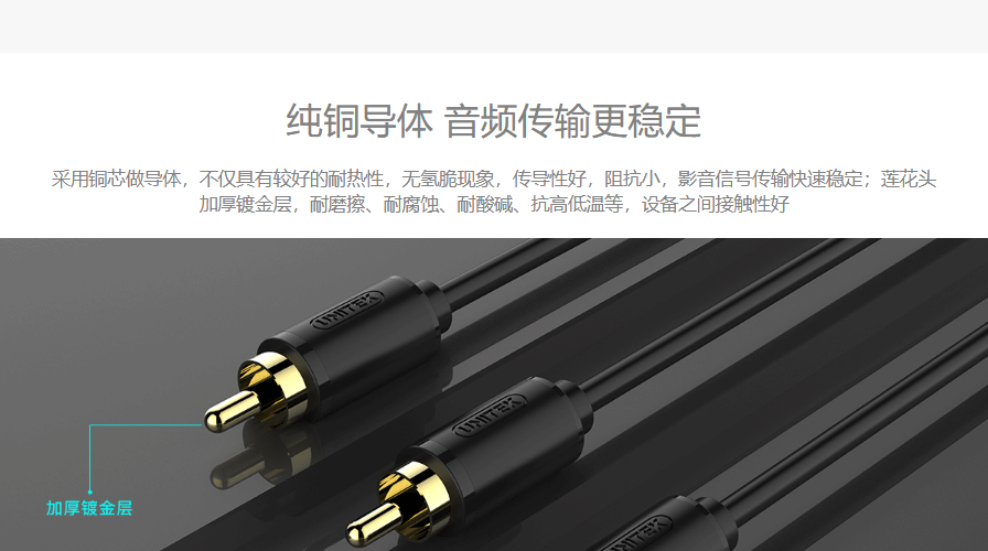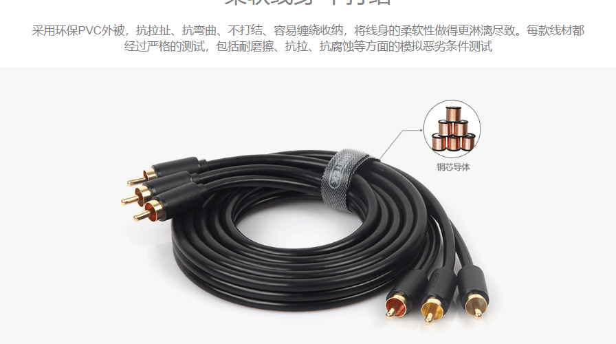 环保材质 环保PVC外被 柔软线身 易缠绕收纳 镀金插头 接触性优良 铜芯导体 传输更稳定