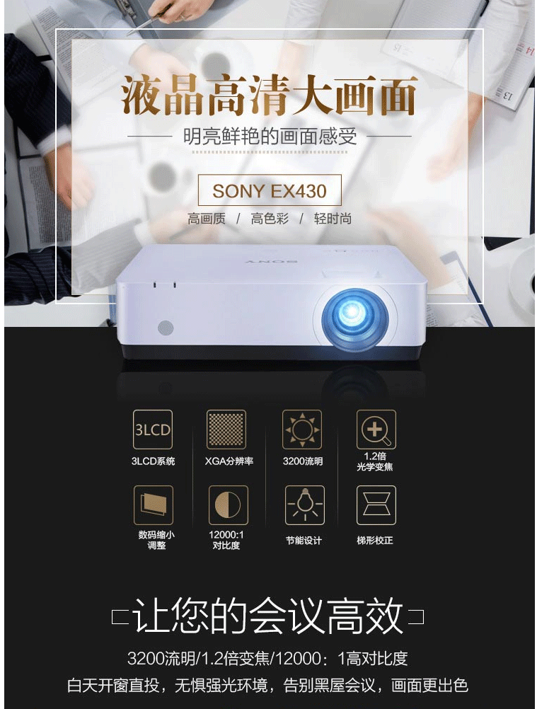 索尼 VPL-EX430 (1024*768dpi /3200流明) 商用教育投影机