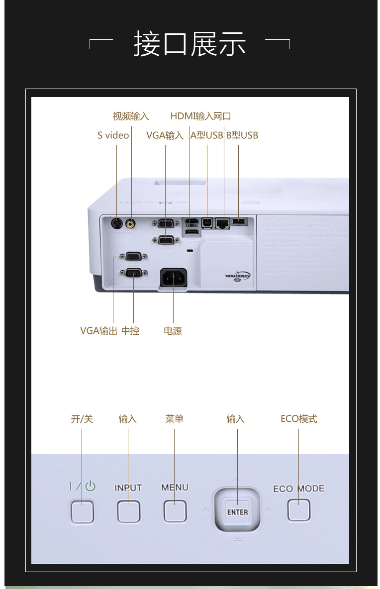 商用教育3LCD投影机,3600流明,对比度:12000:1,标准分辨率:1024*768,HDMI接口 VGA接口。