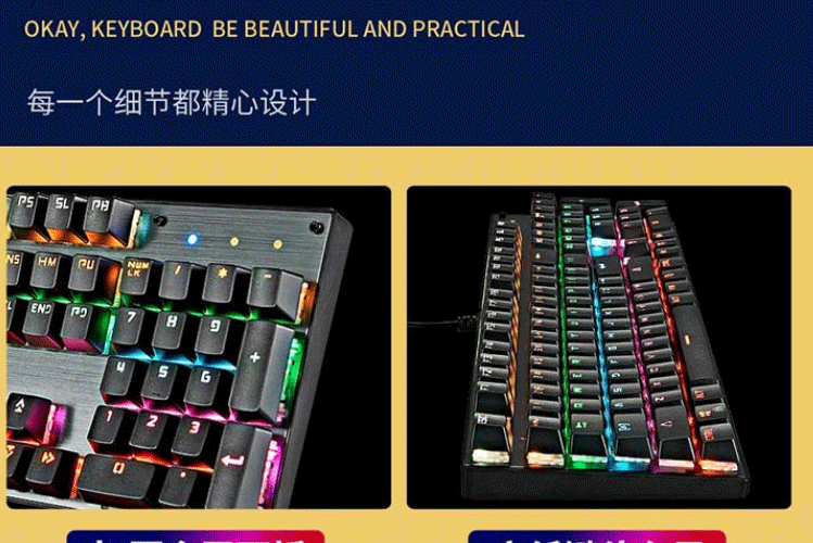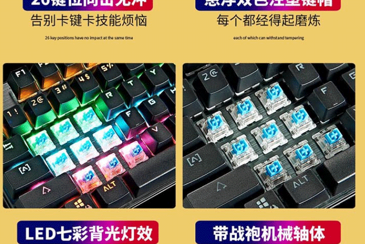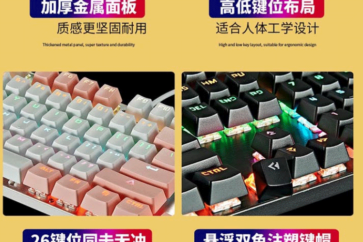 机械键盘 有线键盘 游戏键盘 104键混光键盘 吃鸡键盘 电脑键盘