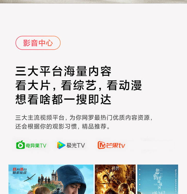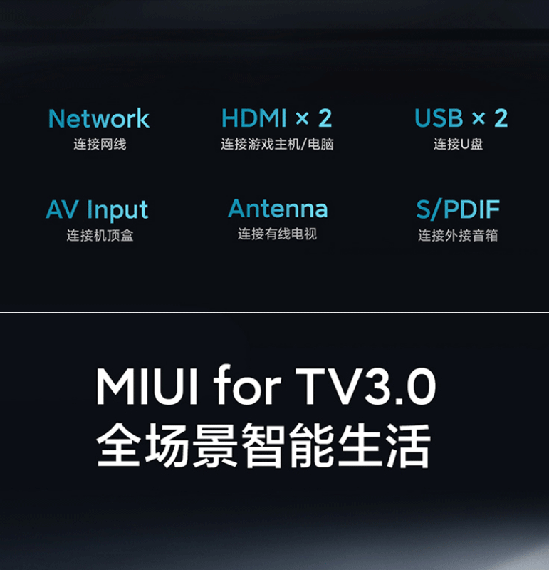 | 包装清单 | 电视*1 电源线*1 (1.5米) 遥控器*1 电池*1 螺钉*1 底座*1 说明书&保修卡*1 |