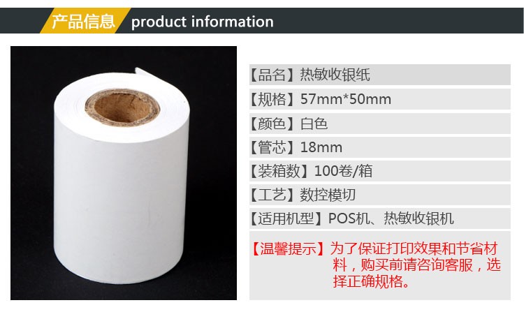 热敏收银纸 57x50 热敏小票打印纸 收银机pos机收款机用纸