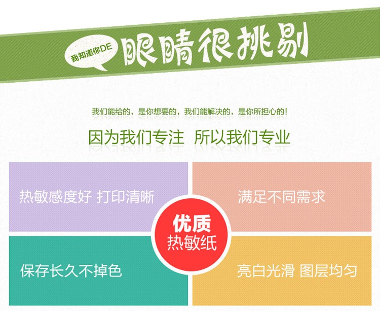 热敏感度好,打印清晰,亮白光滑,涂层均匀,保存上久不掉色。