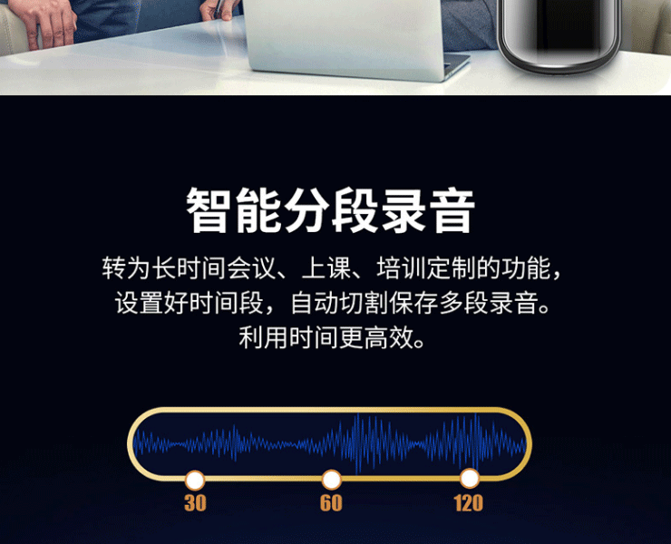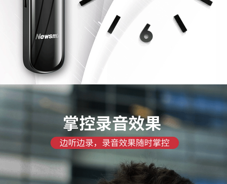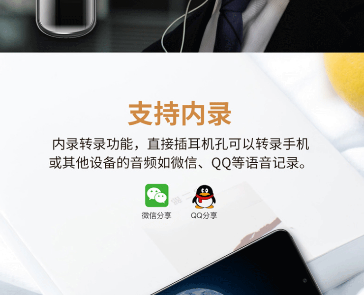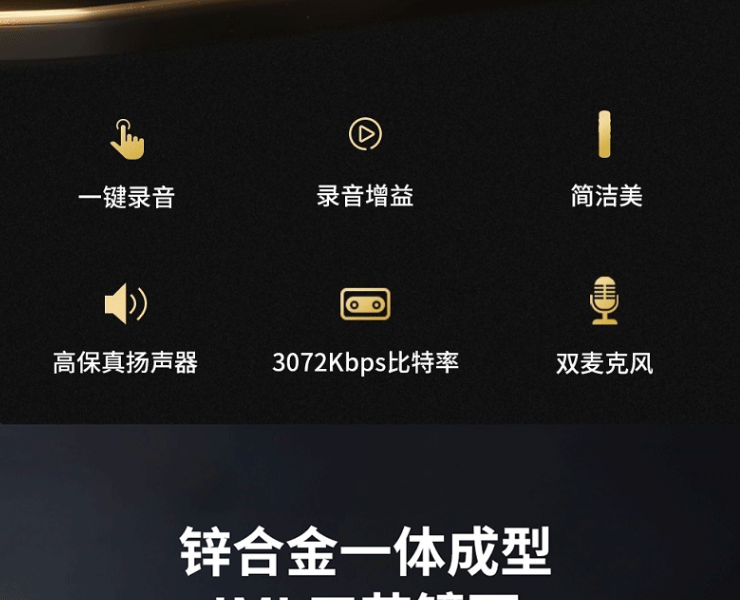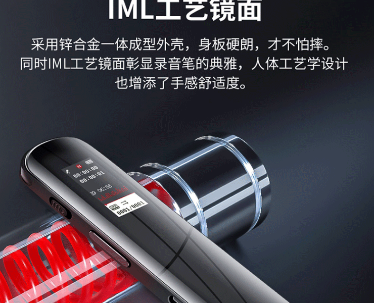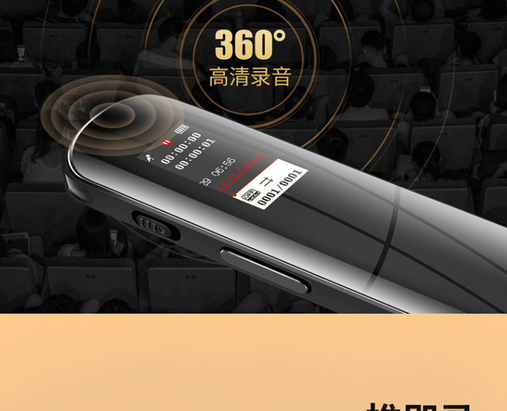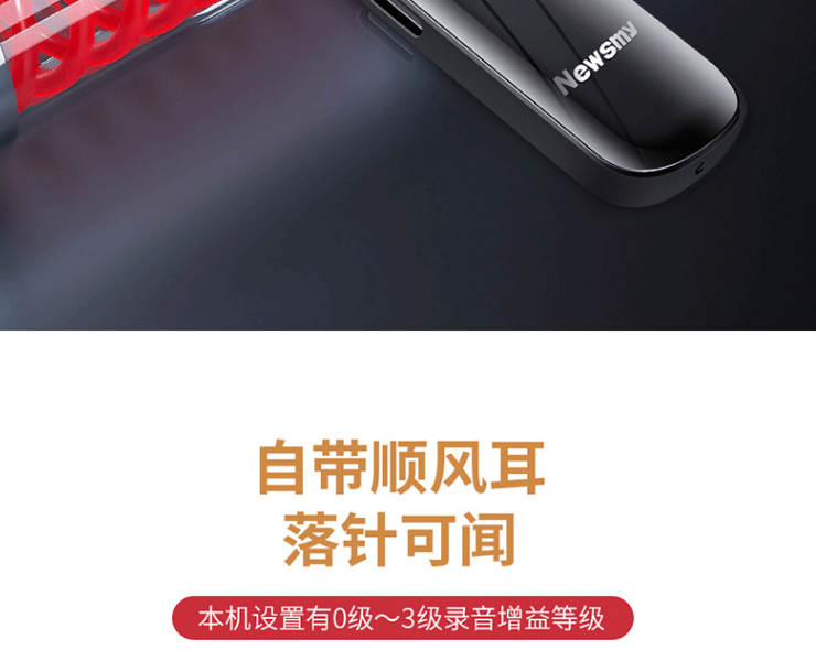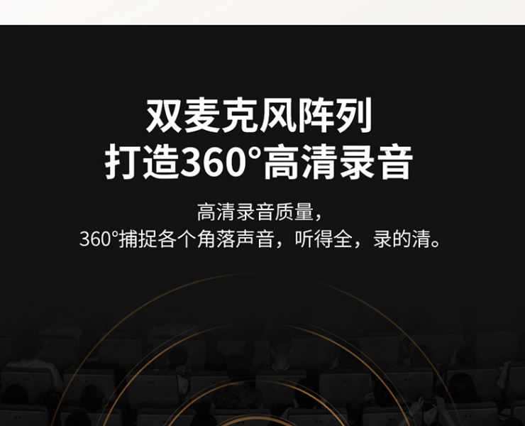 专业高清微型降噪增益 支持内录 商务会议培训交流录音便携可一键录音器