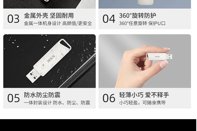 | 包装清单 | 精美包装*1 飚王SSK U盘*1 |