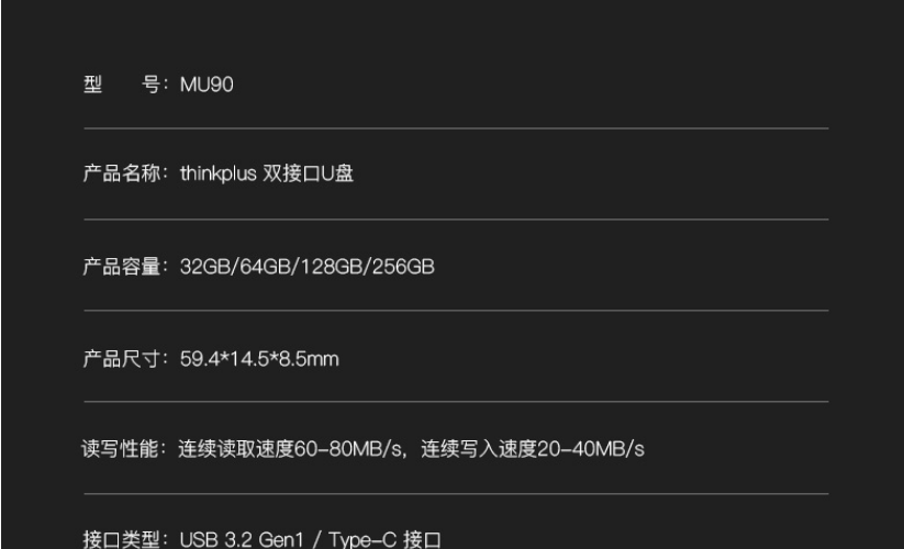 联想 MU90 256G(USB3.2+Type-c双接口)U盘