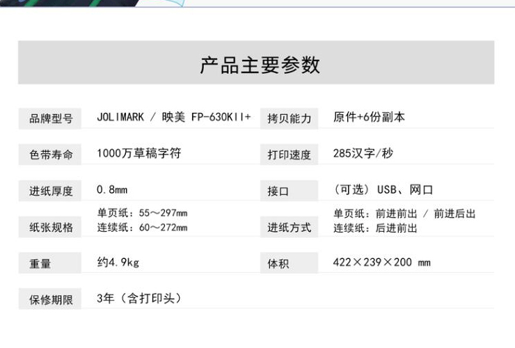 | 复写能力 | 7份(1份原件+6份拷贝) |