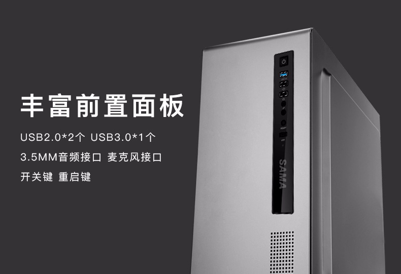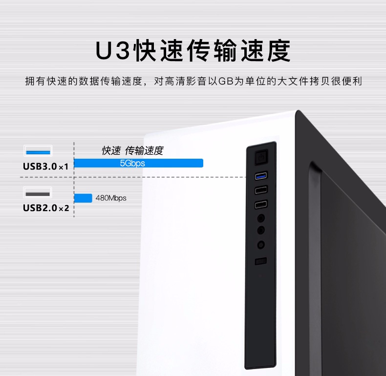 | 面板接口 | USB2.0接口 x2 USB3.0接口 x1 耳机接口 x1 麦克风接口 x1 散热性能 前板 2*12cm风扇位 后板 1*12cm风扇位 侧板 1*12cm风扇位 |