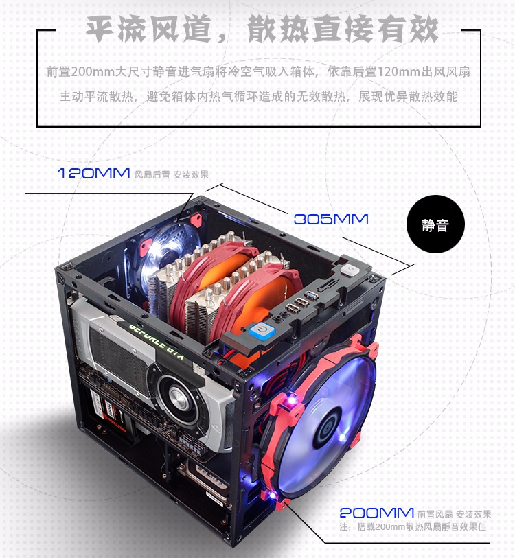 | 散热性能 | 前:1×120mm进风风扇 后:1×120mm进风风扇 |