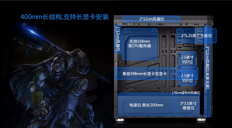 | 风扇位前 | 3*12cm,后1*12cm,顶2*12cm |